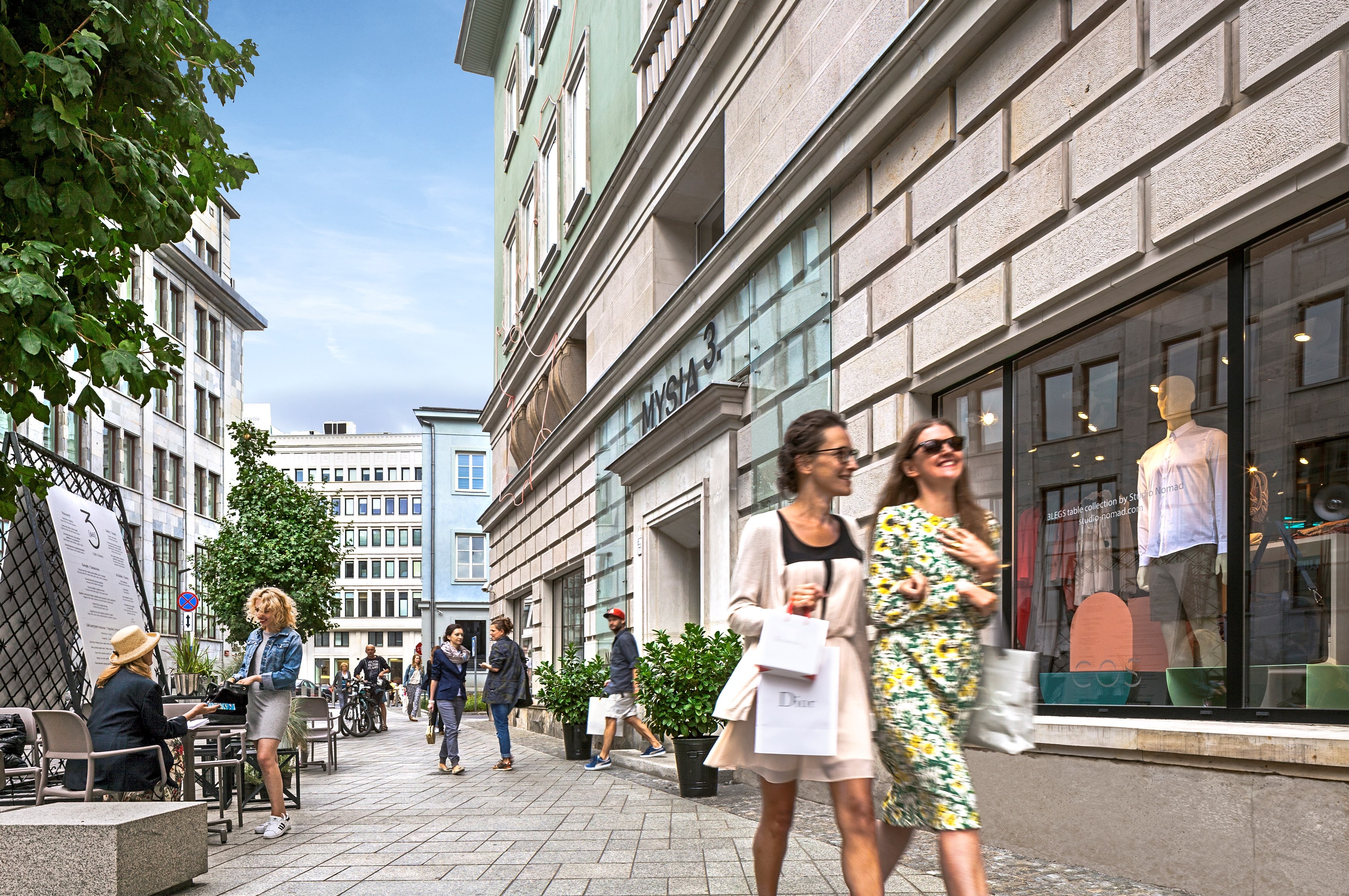 This picturesque square with the centrally located St Alexander’s Church is surrounded by boutiques featuring well-known luxury brands, as well as numerous bistros and cafés.